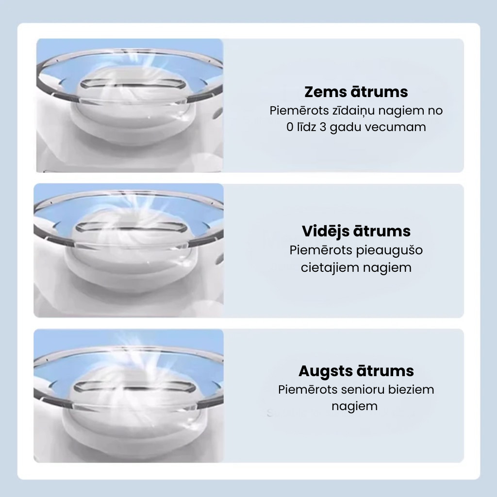 3 ĀTRUMA IESTATĪJUMI – Trīs ātruma režīmi dažādam naga biezumam un kopšanas vajadzībām. Viegli pielāgojas gan pieaugušo, gan bērnu nagiem un to cietībai, tāpēc tas ir lielisks ģimenes rīks perfekti koptām pirkstu galiņām.