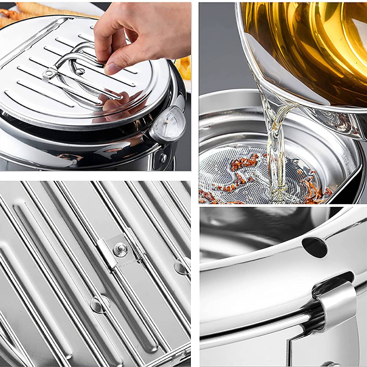 Precīza temperatūras kontrole: komplektā iekļautais termometrs ļauj precīzāk kontrolēt eļļas temperatūru. Eļļas temperatūra nodrošina labāku gatavošanas kvalitāti, lai ēdiens būtu labākas garšas un garšīgāks.