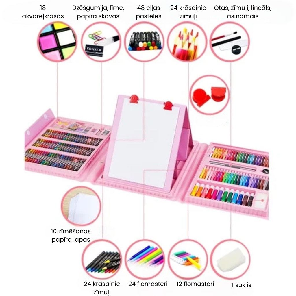 ā£ļø PÄrsteidziet savu bÄrnu ar Å”o iespaidÄ«go komplektu, kurÄ ir pat 208 mÄkslas radīŔanas elementi vienÄ kastÄ. KomplektÄ ietilpst arÄ« izvelkams skicÄÅ”anas bloks!