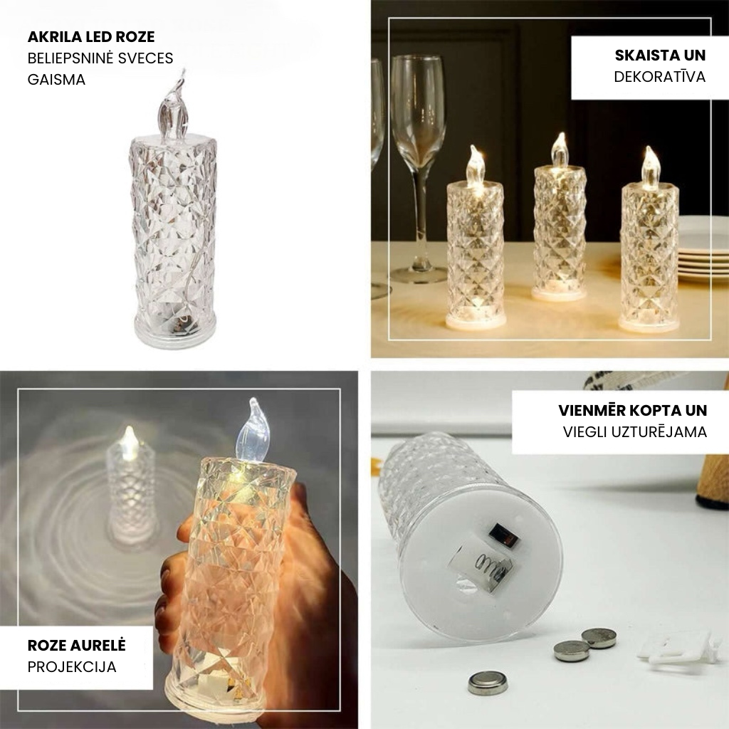 ✨ Kristālrozes svečturis – romantiska gaisma bez piepūles