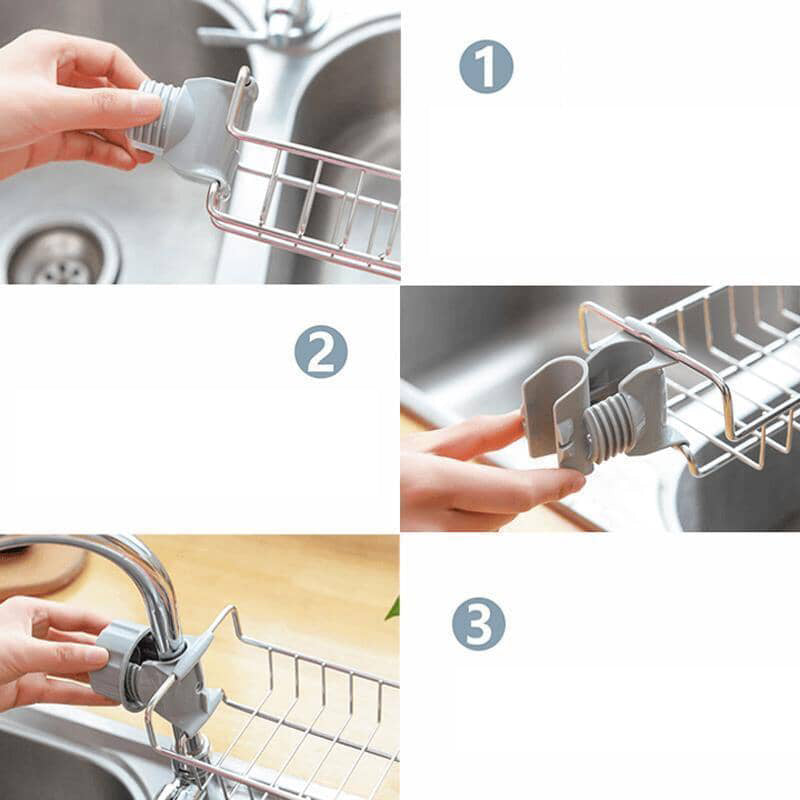 Augstas kvalitātes nerūsējošais tērauds: Virtuves sūkļu turētājs izgatavots no augstas kvalitātes nerūsējošā tērauda, kas ir izturīgs pret rūsu.