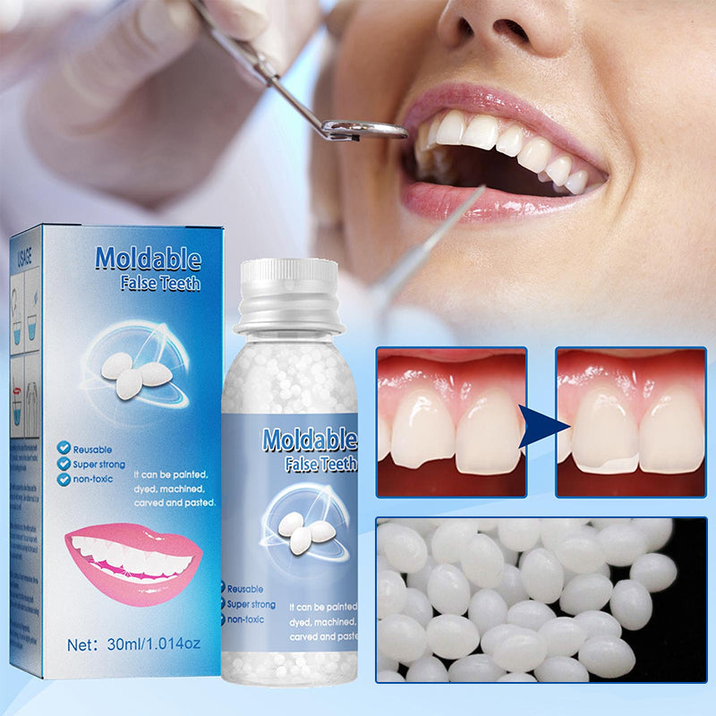 Pagaidu zobu plombas un implanti! Lieliski piemērots, lai labo nuskalus vai bojātus zobus. Palīdz arī tiem, kuri uz laiku nav zaudējuši zobu un vēlas aizpildīt tukšo vietu. Speciālais materiāls nodrošina stipru un stabilu noturību pat ēdot!