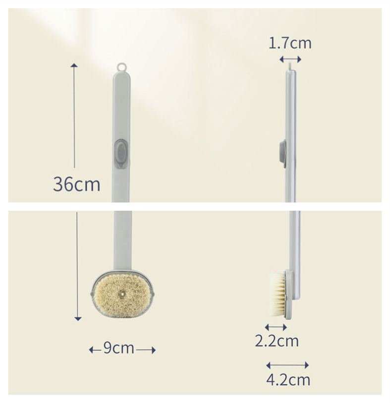 Šī garā roktura masāžas vannas birste ir būtisks instruments, lai rūpīgi attīrītu ādu, noņemtu mirušās šūnas un sasniegtu pat grūti pieejamas vietas, piemēram, muguru.