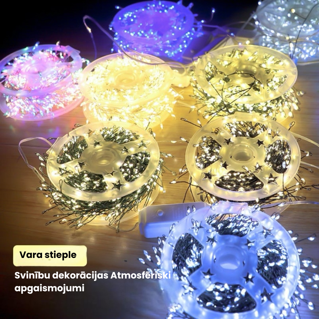 LED gaismiÅas: maiga gaisma, energoefektÄ«vas un ilgmūžīgas, rada mÄjÄ«gu svÄtku atmosfÄru.